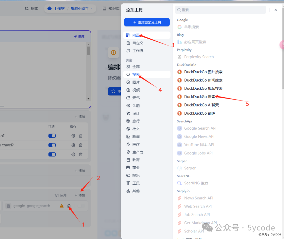 工具有dify内置的应用,也有三方工具,也可以自定义工具。